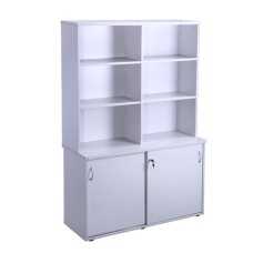 The Eclipse® Commercial Wall Unit brings together style, practicality, and versatility. Essentially a large overhead hutch paired with an Eclipse® credenza (sliding door executive return), it’s perfect for storing books, files, and lockable items in one sleek, professional unit. Ideal for executive offices, boardrooms, or learning environments, it’s designed to meet a wide range of storage needs.