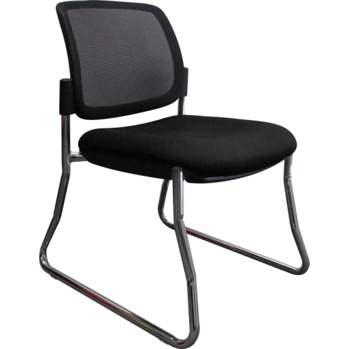 Sled base Visitor chair with sturdy chromed steel frame. Optional arms available. Mesh back and Upholstered seat. 580w x 630d x 810h. Seat Height 490mm, Black seat fabric and mesh back available as standard. Other colours available as special order. Optional arms available, If you want to add arms CLICK HERE